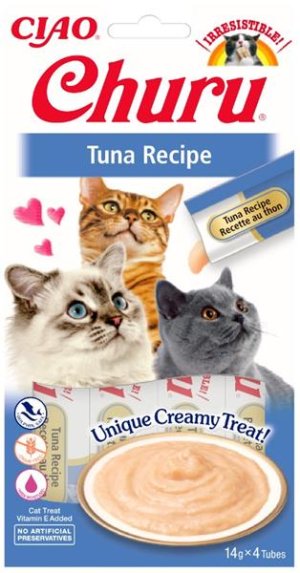 Churu masové pyré pro kočky s divokým mořským tuňákem. Šťavnaté, měkké a extra lahodné masové mini kapsičky bez obilovin. Zdravé mlsání s nízkým obsahem kalorií, bez konzervantů a bez umělých dochucovadel. Inovativní měkká konzistence pamlsku Churu vám umožní trávit společné chvíle s vaší kočičkou hravým a interaktivním způsobem. Díky možnosti podávat extra chutnou grain free masovou pochoutku na způsob kočičí kapsičky přímo "z ruky" objevíte nový způsob odměňování. Masové pyré můžete také podávat stejně jako jinou kočičí kapsičku přímo z misky nebo ho můžete přidat ke granulím pro vylepšení jejich chuti. Kočičí pamlsky mají vysoký obsah vody a díky tomu jsou vhodným doplňkem k suchému krmivu nebo pro kočky, které málo pijí. Výhody: