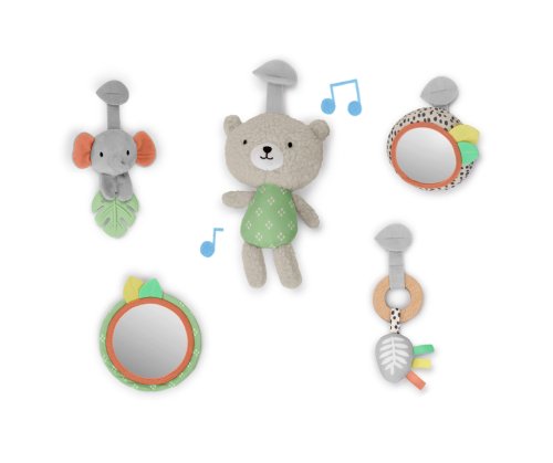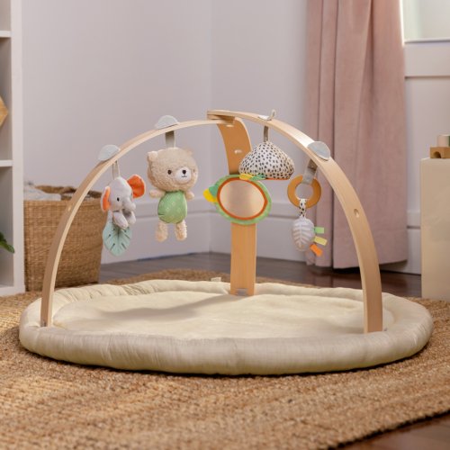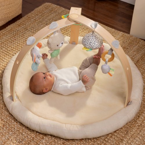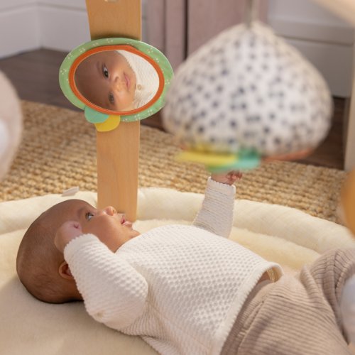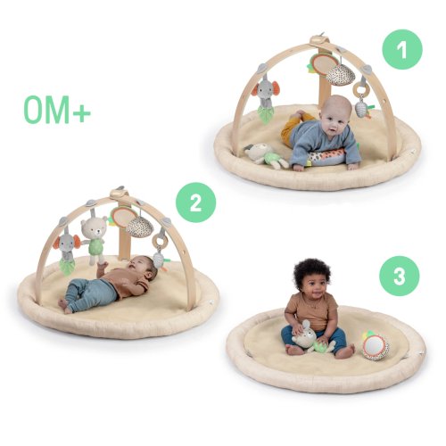 Poskytněte miminku ještě více pohodlí v jeho hracím světě s dekou na hraní Every Season z pravé australské ovčí vlny. Deka nabízí jedinečné útulné prostředí během prvních měsíců děťátka, a díky ovčí vlně dokonale chrání tělesnou teplotu miminka. Měkká hustá vlna je úžasným hmatovým stimulem, čímž podpoří senzorické rozvíjení smyslů děťátka. Deka je ideální pro hry na zádech, ale také pro čas strávený na bříšku. Nabízí tři způsoby hry – ležmo, na bříšku a vsedě. Dřevěná odnímatelná hrazdička obsahuje 5 různých hraček, které nabízejí děťátku plno zábavy. Dokonce si je snadno mohou vzít kamkoli s sebou. Dvě plyšové hračky medvídek a slůně, dřevěný kroužek se senzorickou stužkou a dvě zrcadlové hračky podporující sebe-objevování děťátka. Oboustranný prémiový moderní vzor doplňuje jakoukoli domácnost. Hračky a materiály použité při výrobě deky byly vybrány speciálně pro první rok života děťátka, aby mu co nejvíce pomohly se zrakovým a hmatovým rozvojem.