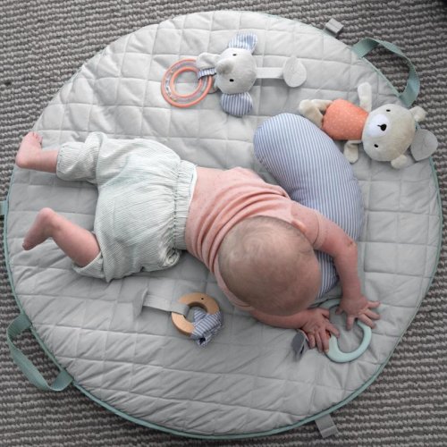 Hravé místo, které dopřeje Vašemu děťátku zábavu a spoustu her podporujících jeho rozvoj a stimulaci smyslů. Oboustrannou podložka v jemných designech krásně zapadne do každé domácnosti. Stejně hrazdičky v designu dřeva s funkcí Slim Fold vytvoří bezpečné a pohodlné místo kdekoliv. Součástí je i bezpečnostní zrcátko, které podporuje u děťátka sebepoznání. Deka se snadno udržuje v čistotě a lze ji prát v pračce. Odnímatelné hrazdičky umožní deku jednoduše složit a uskladnit, tak aby nezabírala velký prostor.