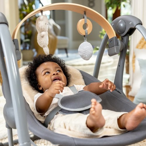 Váš drobeček si zaslouží útulné prostředí, které mu pomůže udržet ho v klidu. Přenosná houpačka Ingenuity Every Season Swing'n Go vyrobená s technologií Air Flow je jednoduchým řešením typu vše v jednom, které udrží dítě v neustálém pohodlí v jakémkoli prostředí. Prémiová síťovina podporuje proudění vzduchu pro dítě a extra příjemná jehněčí vlna je 100% přírodní a pochází z Austrálie. Navíc, 5 rychlostí houpání s motorem WhisperQuiet™ poskytuje děťátku méně rozptylování a hluku. Odnímatelná hrazdička vyrobená ze dřeva z trvale udržitelného lesa obsahuje odnímatelnou plyšovou postavičku medvídka Natea a dřevěný kroužek. Houpačka hraje jemnou hudbu a uklidňující zvuky přírody, aby utišila nervózní chvíle dítěte. Díky designu SlimFold™ se houpačka složí naplocho pro snadnou mobilitu a skladování a je určena pro děti ve věku 0-9 měsíců nebo do 9 kg, podle toho, co nastane dříve. Přenosná houpačka Every Season Swing'n Go je perfektním řešením pro čerstvé rodiče, kteří chtějí mít děťátko v pohodlí a klidu po celý rok.