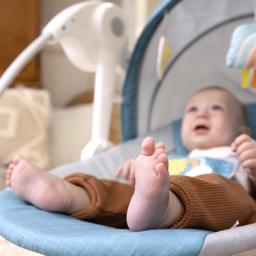 Tato dětská houpačka je vybavena velkým, nadýchaným baldachýnem, který poskytuje vašemu prckovi pohodlí. Houpačka má 6 možností rychlosti a špičkovou technologii TrueSpeed snímání hmotnosti s časovačem. Udržujte dítě v pohodlí díky 2-polohovému sklopnému sedadlu. Odnímatelná sedací podložka se dá prát v pračce. Zabavte miminko hudbou z výběru 8 melodií.