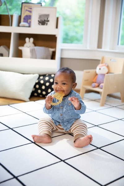 Kousátko Bomby masíruje nové zuby a bolavé dásně. Toto kousátko bez BPA je pro dítě bezpečné pro samo zklidnění, má několik textur, které uleví bolestivým dásním.