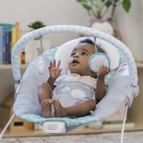 Odnímatelná hrazdička s 2 hračkami zabaví, zatímco uklidňující pohyb vibrujícího sedadla pomáhá uklidnit.