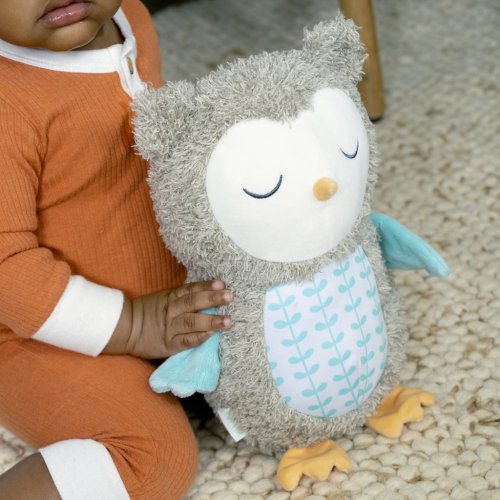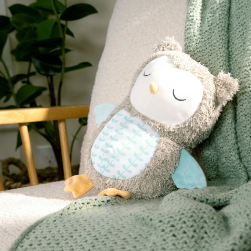 Plyšová hračka ve tvaru spící sovy s reproduktorem v bříšku se snadno připevní ke konstrukci postýlky. Reproduktor PockabÏ Baby™ je vybaven připojením Bluethooth, má možnost přehrávat hudbu v intervalech 30, 60, 90 minut pomocí časovače, po kterém následuje automatické vypnutí, a je vybaven dobíjecí baterií. S reproduktorem můžete dítě uspávat předem nahranými uklidňujícími zvuky přírody a melodickými ukolébavkami. Jemné barvy sovičky Nally doplní výzdobu dětského pokoje a jsou zábavným dárkem na dětskou oslavu.
