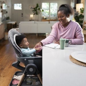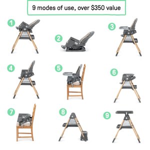 Narodilo se vám druhé dítě? Tato židle dokáže posloužit dvěma dětem najednou v 6 různých kombinacích v režimech houpací křeslo, stolek, věž a nástavba na židli. Pro nejmenší zaručuje ergonomický design 90-90-90 správné držení těla – kotníky, kolena a bedra v pravém úhlu pro lepší trávení během jídla. Pětibodový bezpečnostní pás udrží dítě v bezpečí. Jak dítě roste, stále oceníte funkce jako 3-polohový pultík s vložkou vhodnou do myčky na nádobí a odkládací prostor pod sedadlem. Když se z děťátka stane batole, oblíbené hračky a potřeby na tvoření si může uložit do praktických úložných kapes na boční straně stolku. Součástí je i odnímatelná lavice jako další možnost sezení.