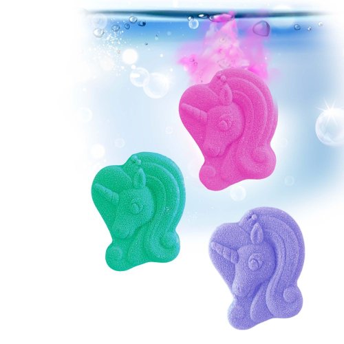 Balení bomby do koupele (3 x 15 g) s tvarem podkovy jednorožce Galupy. Součástí balení jsou 3 různé barvy (růžová, fialová a modrozelená). S vůní karamelového dortu.