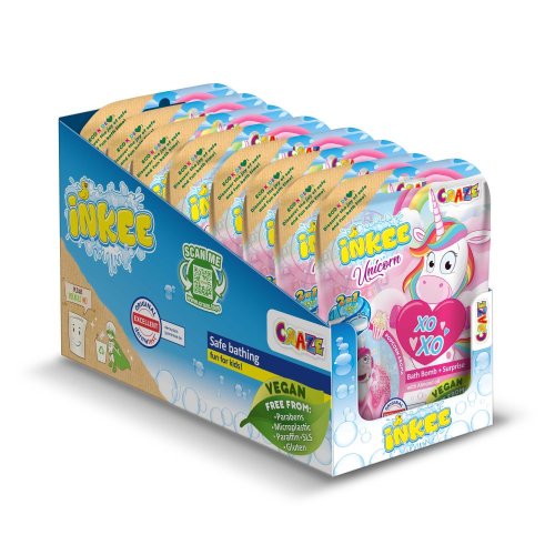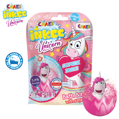 Šumivá bomba do koupele s překvapením. Po vyšumění bomby, která voní jako sladký popcorn naleznete jednu figurku jednorožce. Nasbíráte všech 6 různých figurek jednorožců? Baleno v ekologickém sáčku.