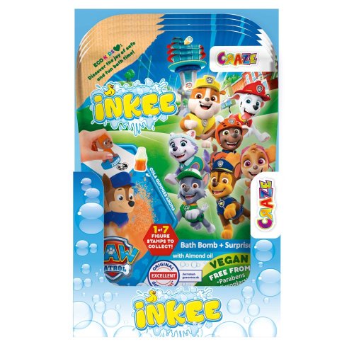 Šumivá bomba do koupele s překvapením s Paw patrol razítkem - 7 postav k sesbírání. Dostupné ve dvou barvách: modrá a oranžová. Vůně Cola Gummies. Baleno v ekologické tašce. Displej s 8 jednotkami. Hmotnost: 80g.