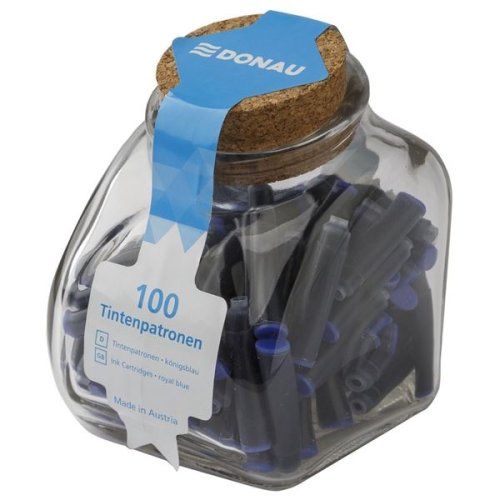 Inkoustové náplně vhodné pro všechna standardní plnící pera Ve sklenici s korkovou zátkou Balení obsahuje 100 ks