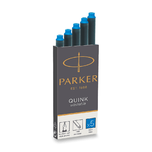 Inkoustové bombičky Parker. Omyvatelný inkoust se dá zmizíkovat a je vypratelný. Balení 5 kusů.