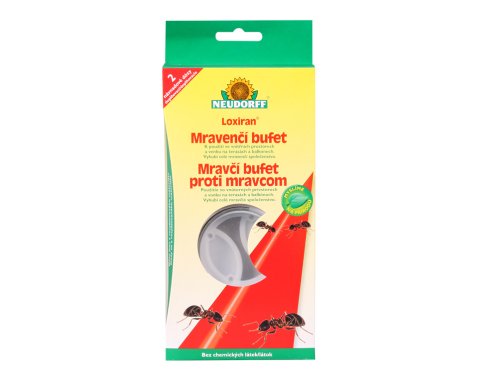 Mravenčí bufet v podobě doplňovacích návnadových dóz je vhodný k odstranění mravenců na terasách, balkónech a v obytných prostorech. Účinnou látkou je spinosad. Dózy jsou vyrobeny z obnovitelného materiálu a jsou určeny k opakovanému použití, snižuje se tak množství odpadu. Dózy je vhodné umístit do blízkosti mravenišť nebo na mravenčí stezky, nedávat na přímé slunce, aby nedošlo k rychlému vyschnutí návnady. Mravenci přijímají návnadový roztok velmi dychtivě a odnášejí ho do mraveniště. Tam jím pak krmí dělnice, larvy i královnu, a tím se vyhubí během 1 až 2 týdnů celé mravenčí společenstvo. V balení jsou 2 kusy.