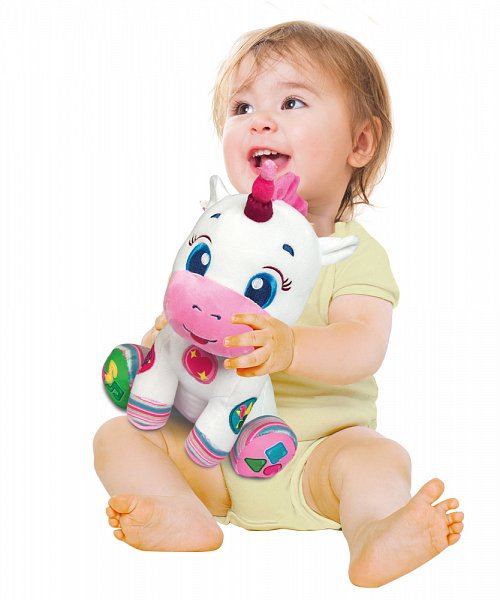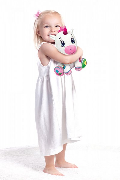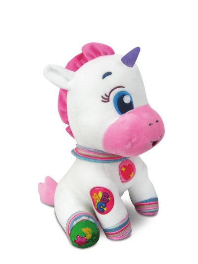 Plyšový interaktivní jednorožec s 5 interaktivními tlačítky pro výuku prvních čísel, písmenek, tvarů a barev. Děti se díky písničkám a veselým rýmovačkám naučí nová slovíčka. Pomáhá s psychomotorickým, emočním a smyslovým rozvojem dítěte.