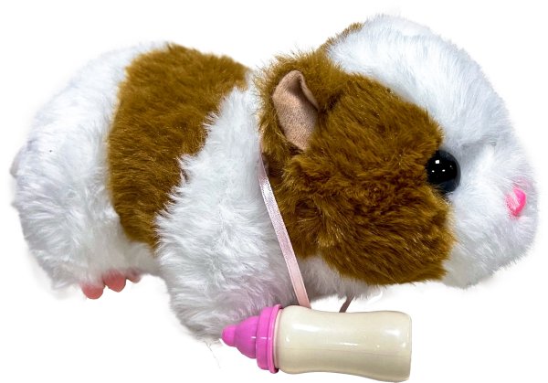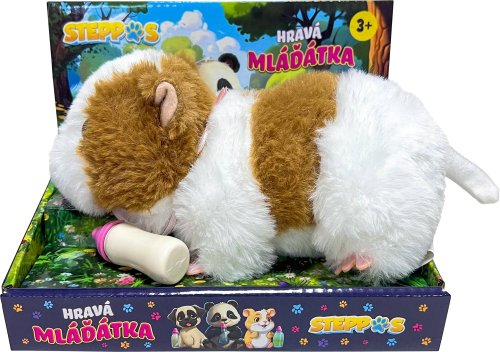 Přiložte láhev s mlékem k tlamě aozve se zvuk pití. Vyjměte láhev s mlékem a ozve se roztomilý zvuk. Velikost cca 18 x 9 cm. Pro provoz jsou potřeba baterie 2x AA, které nejsou součástí výrobku.