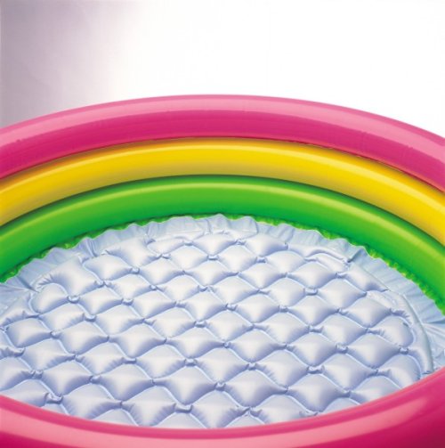 Barevný tříkomorový nafukovací bazének přemění každou zahrádku na malé koupaliště. Rozměr 86x25 cm. vhodné od 12 měsíců.