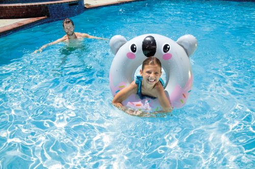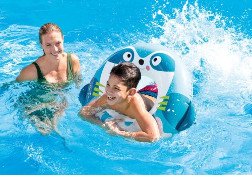 Nafukovací kruh se zvířátky o velikosti cca 79 x 66 x 18 cm.