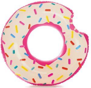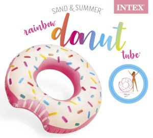 Nafukovací kruh donut o velikosti 1,07 m x 99 cm. Opravná záplata přiložena. Vyrobeno z kvalitního vinylu. Nafukovací kruh s realistickým potiskem nakousnuté koblihy Donutu. Kruh využijete v bazénu i na dovolené u moře. Krásný kousek, se kterým bude koupání jedna velká zábava. Součástí balení je také sada na opravu. Rozměry balení 20 x 18 x 5 cm. Vhodné pro děti od 9 let.