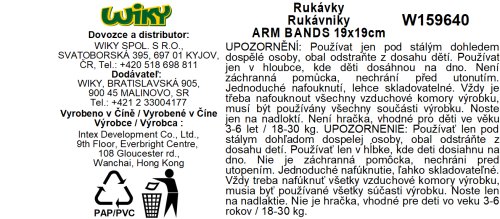 Nafukovací rukávky o rozměrech 19x19 cm. Věk 3-6 let.