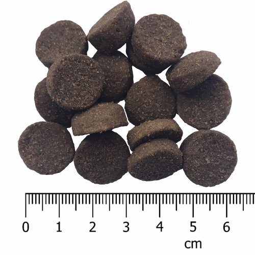 Analytické složky: Protein 27 %, hrubý tuk 16 %, hrubá vláknina 3,5 %, hrubý popel 8,1 %, vápník 1,3 %, fosfor 1,0 %, vlhkost 10 %.