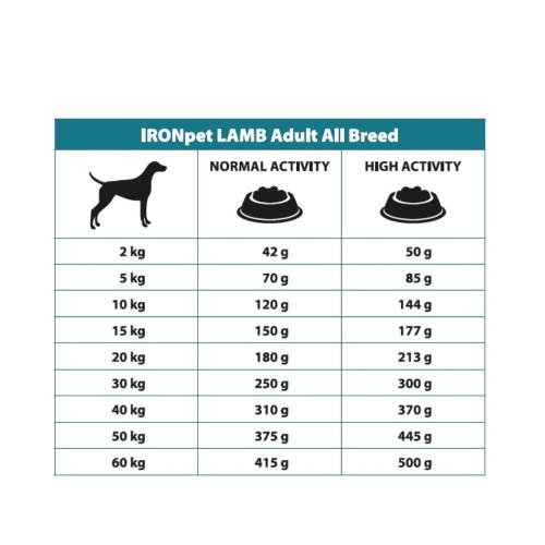 Jediný zdroj živočišných bílkovin s vyváženým poměrem bílkovin a tuku je použito jehněčí maso - monoproteinová strava výrazně snižuje riziko vzniku intolerancí a potravinových alergií. IRONpet Dog Adult All Breed Lamb (Jehněčí) neobsahuje lepek a kuřecí maso je tedy hypoalergenní, snadno stravitelné a vhodné i pro psy s citlivým trávením.