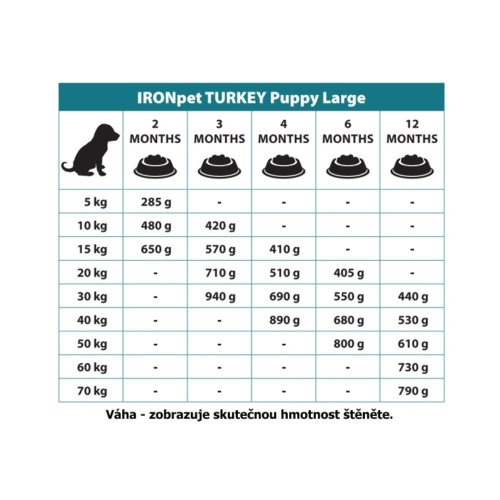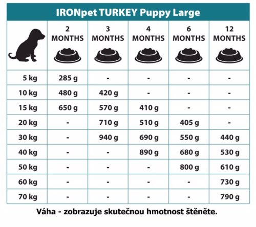 Jediný zdroj živočišných bílkovin s vyváženým poměrem bílkovin a tuku je použito krocaní maso - monoproteinová strava výrazně snižuje riziko vzniku intolerancí a potravinových alergií. IRONpet Dog Puppy Large Turkey (Krocan) neobsahuje lepek a kuřecí maso je tedy hypoalergenní, snadno stravitelné a vhodné i pro psy s citlivým trávením.