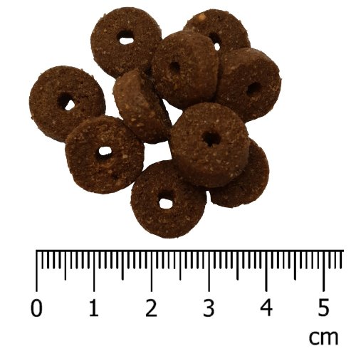 Analytické složky: Protein 29 %, hrubý tuk 15 %, hrubá vláknina 3,5 %, hrubý popel 7,5 %, vápník 1,4 %, fosfor 1,15 %, vlhkost 10 %.
