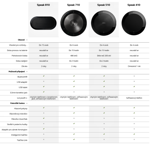 Jabra SPEAK SERIES se prodává v 6 variantách:
