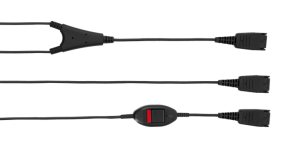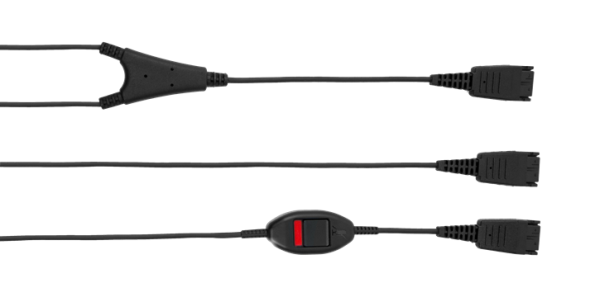 Supervisor cables, or ‘Y cords’ fit in between the headset cable and the telephone connection cable (or USB adapter), to allow two headsets to fit to one phone for training or conferencing purposes.