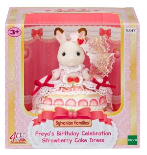 Oslavte 40. výročí Sylvanian Families s exkluzivní edicí, která představuje figurku čokoládové králičí dívky Freyi, oblečenou do nádherných šatů inspirovaných jahodovým dortem. Šaty mají vrstvy jemné bílé krajky, červenou stuhu a výrazné dekorace ve tvaru jahodových šperků v rubínově červené a zlaté barvě. Součástí balení je také židle, která doplňuje slavnostní vzhled celého exkluzivního 40th Anniversary balení. Hračky Sylvanian Families rozvíjejí představivost a povzbuzují děti k hraní rolí. Hra s figurkami rozvíjí kreativitu a učí emocím vytvářením a vyprávěním příběhů založených na každodenních zážitcích a pozorování světa. Vyznačují se nejvyšší kvalitou a výjimečným důrazem na detaily. Figurky Sylvanian Families jsou pokryté měkkým semišem, mají pohyblivé končetiny a hlavu. Oblečení lze z figurek sundat a vyměnit za jiný outfit. Baleno v krabičce. Rozměry balení: 13 x 14 x 11,5 cm. Věk: 3+