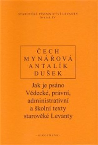 Sv. 4: Mezi písemnými prameny ze starověké Levanty tvoří nezanedbatelnou součást texty vědecké, právní, administrativní a školní povahy. Prostřednictvím komentované antologie se tak čtenář může seznámit s vývojem jednotlivých skupin textů či žánrů. Pro řazení textů má nezanedbatelnou důležitost i chronologické uspořádání, které umožňuje snadný pohled na vývoj konkrétního druhu textů. Zatímco nejstarší texty pocházejí již ze 3. tisíciletí př. Kr., tak nejmladší reprezentují bohatství doby železné v 1. tisíciletí př. Kr.