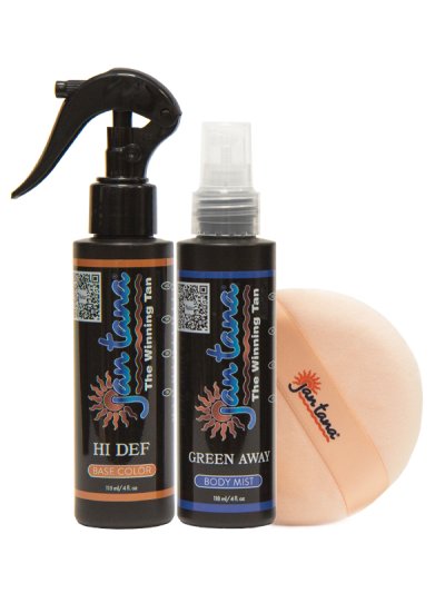 Jan Tana Green Away reguluje pH pokožky, aby se předešlo jejímu zelenání ostraňuje zelený tón pokožky a obnovuje soutěžní barvu nastříkejte na celé tělo Jan Tana Green Away, nechte vstřeba a poté aplikujte barvu Jan Tana použijte k odstranění zelených tónů v podpaží a na dalších místech těla naneste na houbičku, odstraňte zelený tón barvy a obnovte původní barvu Krok 3 (Hi-Def):