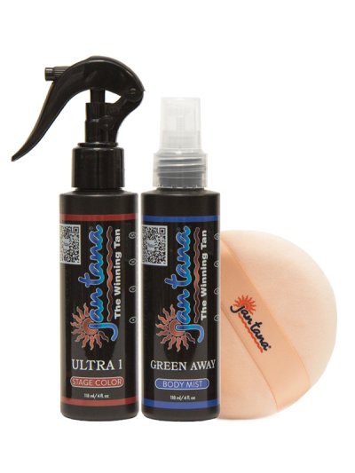 Jan Tana Green Away reguluje pH pokožky, aby se předešlo jejímu zelenání ostraňuje zelený tón pokožky a obnovuje soutěžní barvu nastříkejte na celé tělo Jan Tana Green Away, nechte vstřeba a poté aplikujte barvu Jan Tana použijte k odstranění zelených tónů v podpaží a na dalších místech těla naneste na houbičku, odstraňte zelený tón barvy a obnovte původní barvu Krok 3 (Hi-Def):