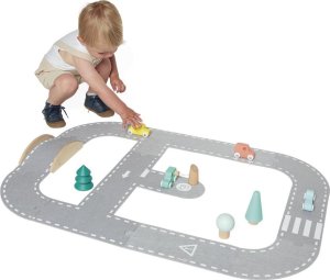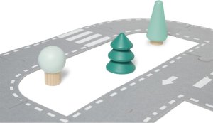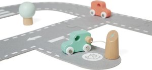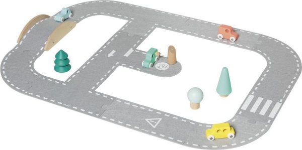 autodráha se skládá z 21 dílků: 12 plstěných dílků pro vytvoření velkého okruhu a 9 dřevěných doplňků: 4 autíčka včetně jednoho poutavého elektromobilu, 1 nabíjecí stanice, 3 stromy a 1 mostu děti si mohou představovat, že nabíjejí "elektrické" autíčko v dřevěné nabíjecí stanici hra stimuluje zručnost vašeho dítěte, podporuje jeho představivost a kreativitu