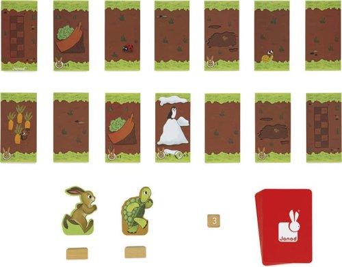 Nemá smysl běhat? V této deskové hře na motivy známé pohádky o zajíci a želvě musí hráč doběhnout do cíle dříve než zajíc. Hra pro jednoho hráče, který si tento neuvěřitelně bláznivý závod může zahrát sám. Hráč je želva, pomalejší, ale mazanější než zajíc! Trať plná nástrah a akční karty pro každou postavu - to slibuje závod bez slitování. Desková hra, která vyžaduje přemýšlení a strategii. Zajíc je odhodlán dorazit první! Obsahuje: 14 destiček, které tvoří hrací desku, 12 akčních karet, 1 kostku a 2 postavy, návod.