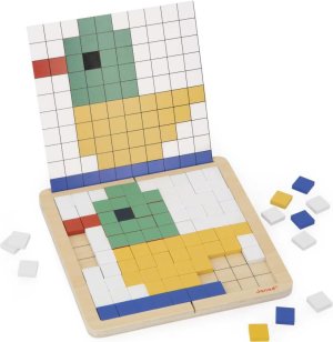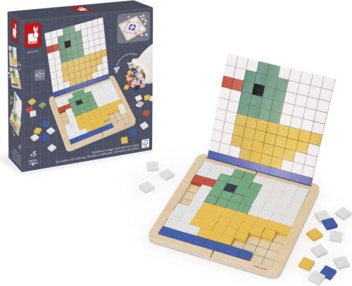Objevte zábavnou a vzdělávací kódovací hru Pozor, žába!, která nabízí hned 4 různé herní režimy, díky nimž se děti naučí základy logiky, rozvíjí koncentraci i prostorovou představivost: Kopírování – Děti pokládají barevné dlaždice přímo na předlohu. Reprodukce – Děti skládají vzor z dlaždic vedle předlohy. Symetrie – Úkolem je doplnit chybějící polovinu obrázku zrcadlově podle modelu. Kódování – Pomocí barevných a číselných kódů na kartě odhalují skrytý obrázek. Tato dřevěná edukativní hra podporuje kreativní myšlení, rozvoj matematických dovedností i schopnost řešit problémy. Ideální pro samostatné hraní nebo ve dvojici. Vyrobeno z kvalitního certifikovaného FSC® dřeva a kartonu.