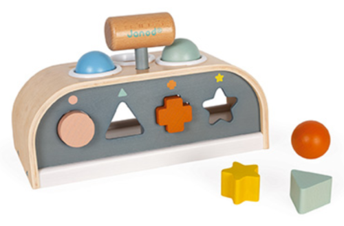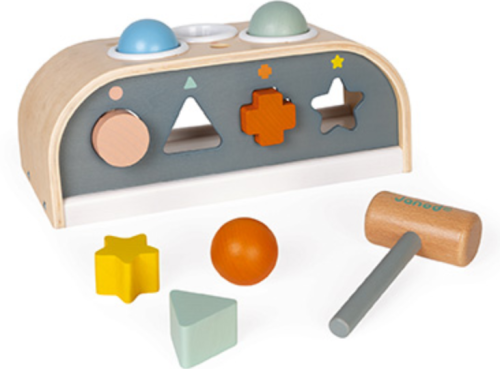 Co by mohlo být zábavnější než zatloukání kuliček do otvorů? Aby byla hračka ještě zábavnější, jsou zde k dispozici další 2 aktivity. Dítě se učí rozpoznávat 4 různé tvary a musí je roztřídit do správných otvorů. Také se učí poznávání barev. Hra je vhodná i pro nejmenší, díky svým jemným barvám a zaobleným tvarům. V yrobeno ze dřeva s certifikátem FSC® z udržitelných lesů . Vhodné pro děti od 12 měsíců.