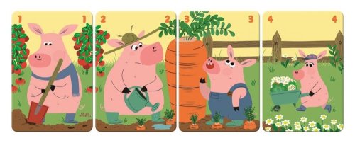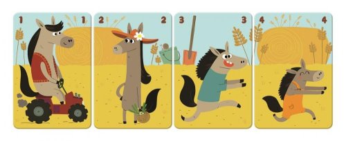 Karetní hra Rodinná farma na způsob kvarteta. Cílem hry je vytvořit co nejvíce zvířecích rodin. Karetní hru je možné využít v dřívějším věku na učení barev a zvířátek (třídění do množin podle barvy nebo zvířátka), případně první počítání do 4 a na zlepšení koncentrace. Hra rozvíjí: