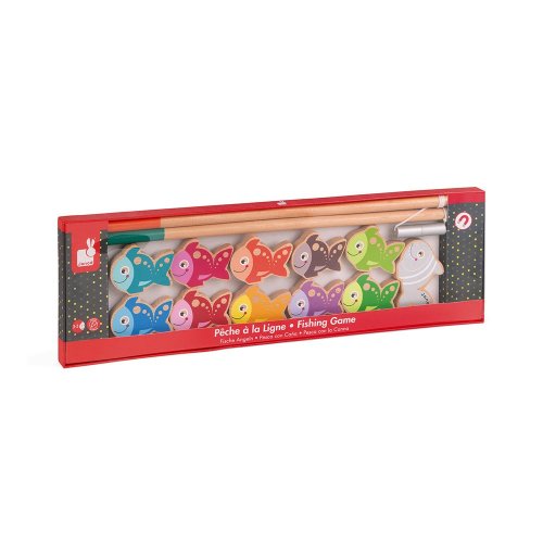 Chytání rybiček nikdy nebylo takovou zábavou jako teď! Kdo první chytí rybičku na udici? Kdo chytí žraloka? Hra je vyrobena z masivního dřeva a obsahuje 11 různě zbarvených dřevěných rybiček, které mají na zadní straně číslice a dvě magnetické udice. Kromě rozvoje jemné motoriky, pozornosti a koncentrace je vhodná i na učení barev a počítání. Vhodné pro děti od 2 let.
