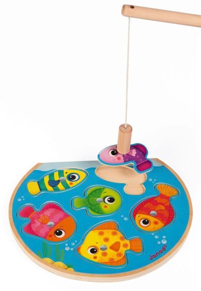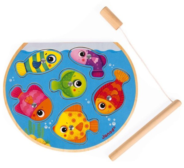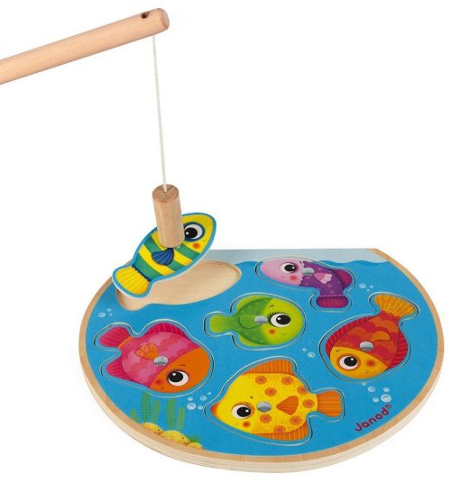 Užijte si zábavu při lovení rybiček! Dětské dřevěné puzzle zabaví nejen děti. Zvládnete pomocí udice vylovit všechny barevné rybičky a pak je správně naskládat zpět? Balení obsahuje 6 rybiček a 1 udičku. Vhodné pro děti od 12 měsíců.