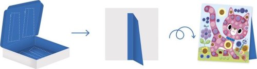 v této kreativní sadě čekají na děti 4 základy obrázků, které lze ozdobit kulatými pěnovými samolepkami ideální hra pro rozvoj jemné motoriky a trpělivosti pomocí návodu a barevných obrysů tvarů na základním obrázku děti jednoduše dolepují odpovídající pěnové nálepky na správné místo k dokončení jednoho obrázku je potřeba asi 30 minut tento kreativní box je součástí řady My Arts +amp; Crafts , která dětem nabízí první kreativní aktivity se zvířátky balení obsahuje: 4 základy obrázků, 3 archy kulatých pěnových samolepek a 2 archy třpytivých pěnových samolepek