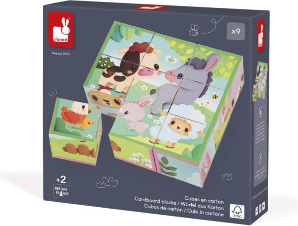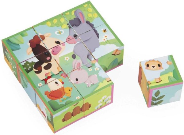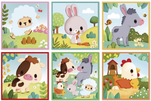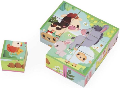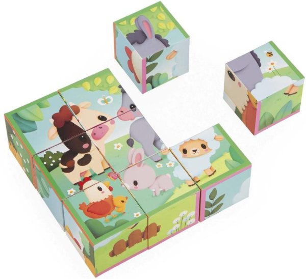 Dřevěné kostky s obrázky zvířátek je zábavné skládání, během kterého vytvoříte 6 obrázků z 9 kostek.
