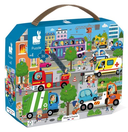 Puzzle JANOD s obrázkem rušného města. Puzzle je baleno v originálním a praktickém kufříku vhodném na doma i na cesty. Součástí balení je plakátová předloha. Rozměr složeného puzzle cca 50 x 40 cm