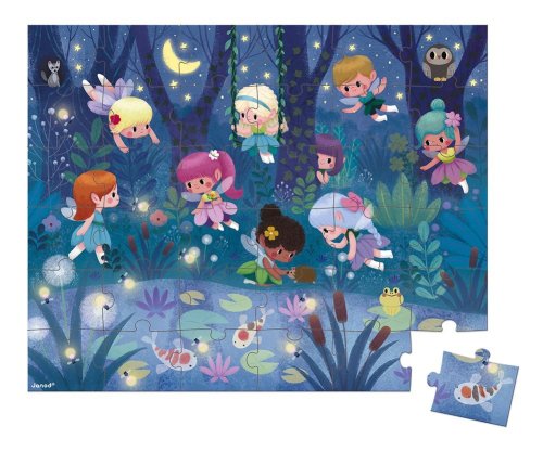 Puzzle JANOD s motivem nočního lesa a malých kouzelných víl. Puzzle je baleno v originálním a praktickém kufříku vhodném na doma i na cesty. Obsahuje předlohu skládaného motivu ve skutečné velikosti. Rozměr složeného puzzle cca 50 x 40 cm