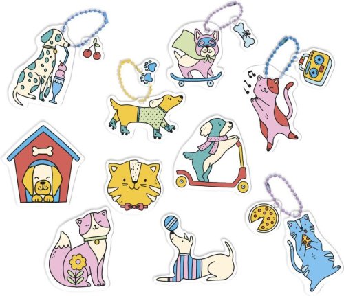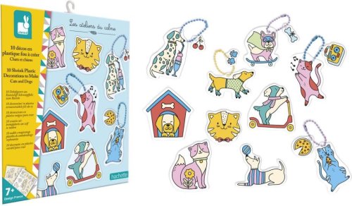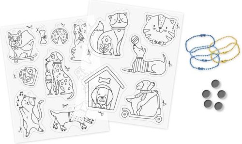 Zábava, tvoření a kouzla v jednom! S touto kreativní sadou si děti od 7 let mohou vytvořit až 10 originálních dekorací s motivem koček a psů – a to pomocí zábavné techniky zvané bláznivý (magický) plast.