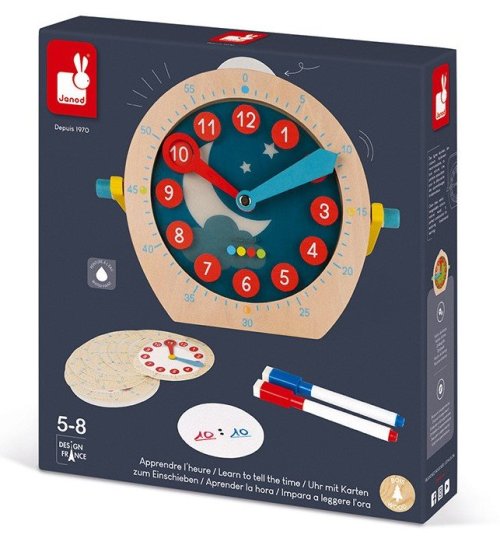 Kolik je hodin? Učím se hodiny a čas se stíratelnými kartami, na které si Vaše mohou zapsat, kolik je zrovna hodin. Hodiny pomáhají dětem pochopit vnímání času, jasně očíslované hodiny mají nastavitelné barevné ručičky ze dřeva, které se plynule pohybují. S těmito hodinami se čas a jeho plynutí hravě naučí každé dítě. Balení obsahuje dřevěné hodiny, 14 ks stíratelných karet a 2 barevné fixy. Doporučeno pro děti od 3 let.