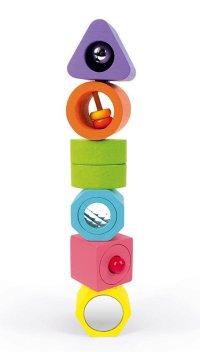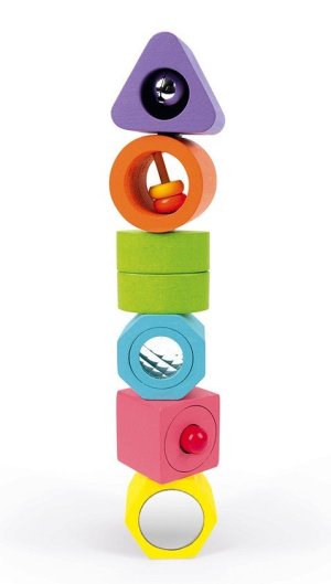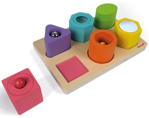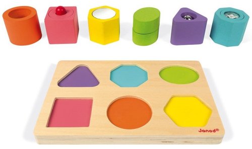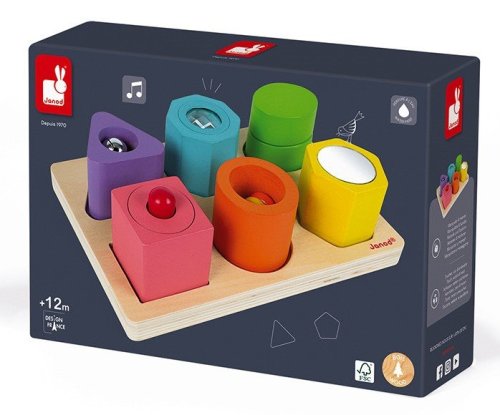 Učení se tvarů ještě nikdy nebylo tak zábavné! Dřevěné vkládací puzzle pro nejmenší. Děti se učí různé tvary a barvy. Každý komponent vydává navíc nějaký zvuk nebo má jiný aktivní prvek jako např. zrcadélko. Vhodné pro děti od 2 let.