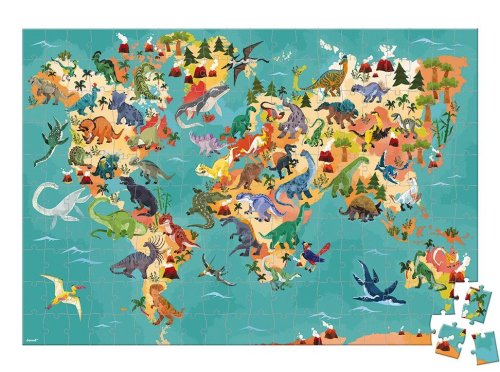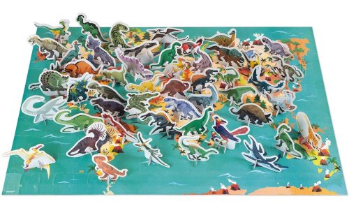 Dětské vzdělávací puzzle JANOD s motivem pravěkých dinosaurů. Tyto kartónové puzzle s 200 ks dílky a 50 ks figurek dinosaurů jistě okouzlí a zabaví nejedno malé dítě. Součástí balení je i plakát, který se může použít jako šablona. Rozměr složeného puzzle cca 99 x 69 cm