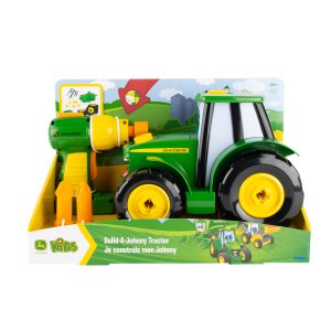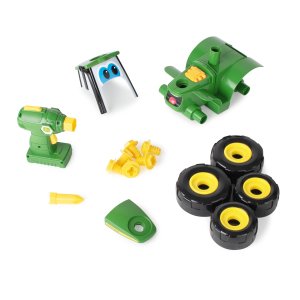 JD Kids John Deere Traktor Johnny montovací. Délka traktoru 23 cm, Délka šroubováku 14 cm, 3 vyměnitelné klíče. Baterie 2xAA (LR6) součástí balení. Volná kola.