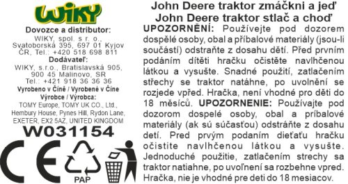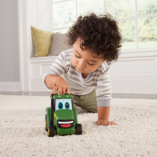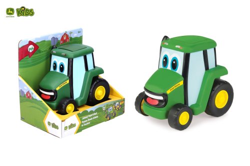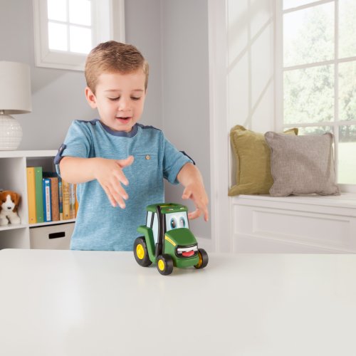 JD Kids John Deere - Traktor Johnny zmáčkni a jeď. Velikost 15 cm. Traktor se natahuje zamáčknutím střechy. Po uvolnění se rozjede směrem vpřed.