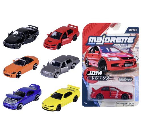 Prémiové kovové autíčko na volnoběh, z řady JDM Legends. Otevírací části. Měřítko 1:64, délka cca 7,5 cm. 6 druhů.