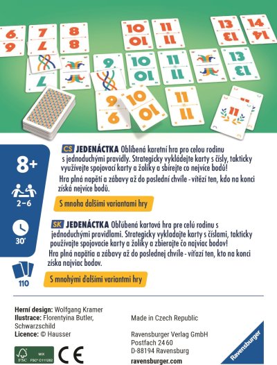 Poznejte 11! – klasickou karetní hru, která baví generace hráčů už od roku 1925! Tato hra přináší rychlou zábavu, jednoduchá pravidla a napětí až do poslední karty. Kombinujte karty strategicky, překazte plány soupeřům a chytrým tahem ukončete hru v ten pravý moment! Ideální volba pro rodinné večery i přátelské souboje, ve kterých se u stolu nikdo nebude nudit. 11! – léty ověřená klasika, která přináší radost všem věkovým kategoriím.
